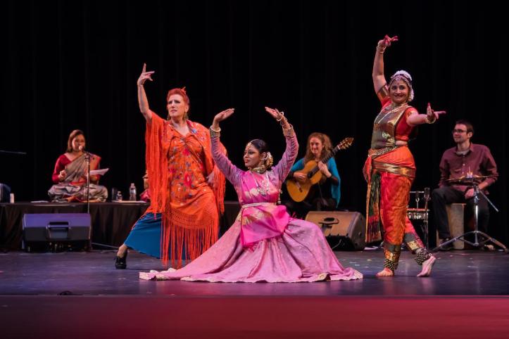 We vividly remember a documentary film, Latcho Drom, that makes a compelling case for the theory that flamenco originated with nomadic people from Northern India, that it shares many characteristics with Indian classical dance, especially Kathak. On stage at Breen, Antara Datta, Sujatha Srinivasan, Monali Nandy Mazumdar, La Romera, their students, and their musical colleagues made a similar case. We look forward to their next project.