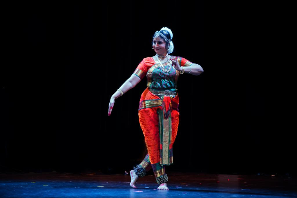 Another Indian classical dance form, Odissi, was represented by a single dancer, Monali Nandy Mazumdar. Unlike Datta and Srinivasan who teach in their own dance schools and choreographed their dances for this concert, Mazumdar has a day job unrelated to dance – she’s a postdoctoral scholar in Microbiology at Case Western Reserve University. The dance she performed for this concert was choreographed by Kelucharan Mohapatra, (1926 – 2004) who is credited with reviving Odissi dance in the 20th century. Mazumdar performed to recorded music.